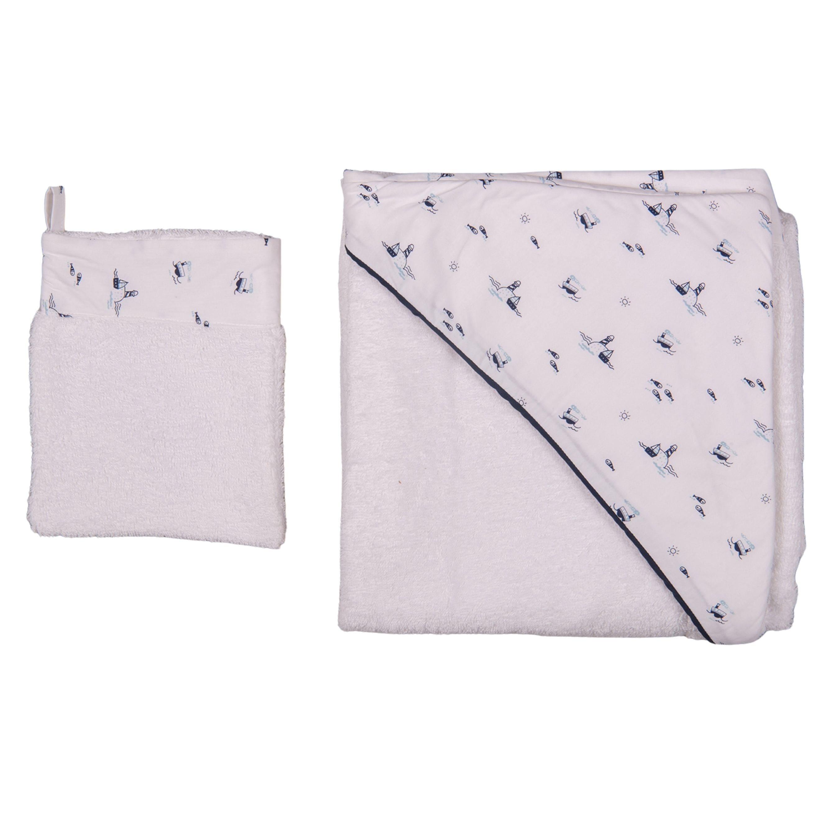 LITTLE STARS | Boys White & Blue Hooded Baby Towel & Mitt Set