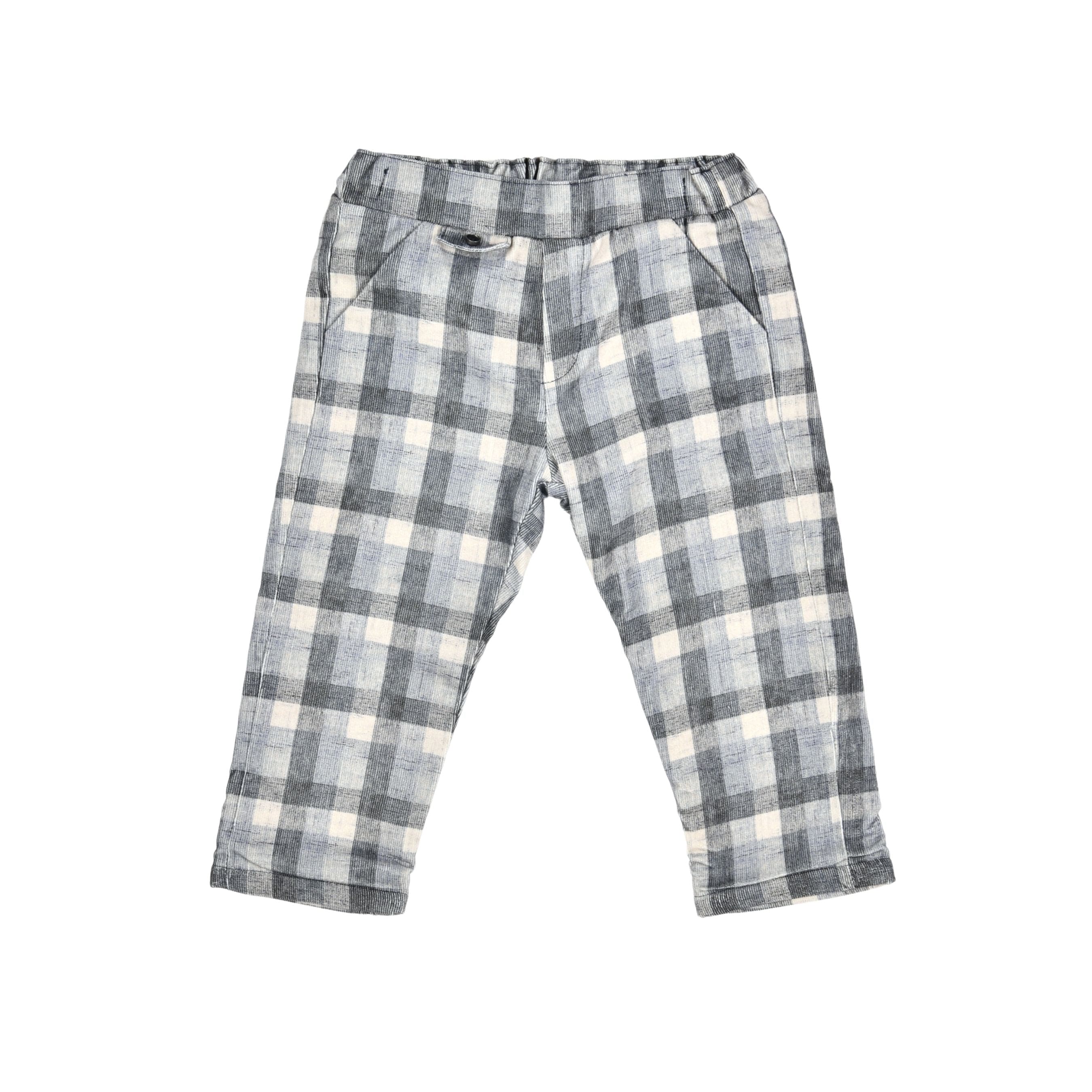 CHARLY | Boys Blue & Ivory Check Velour Trousers