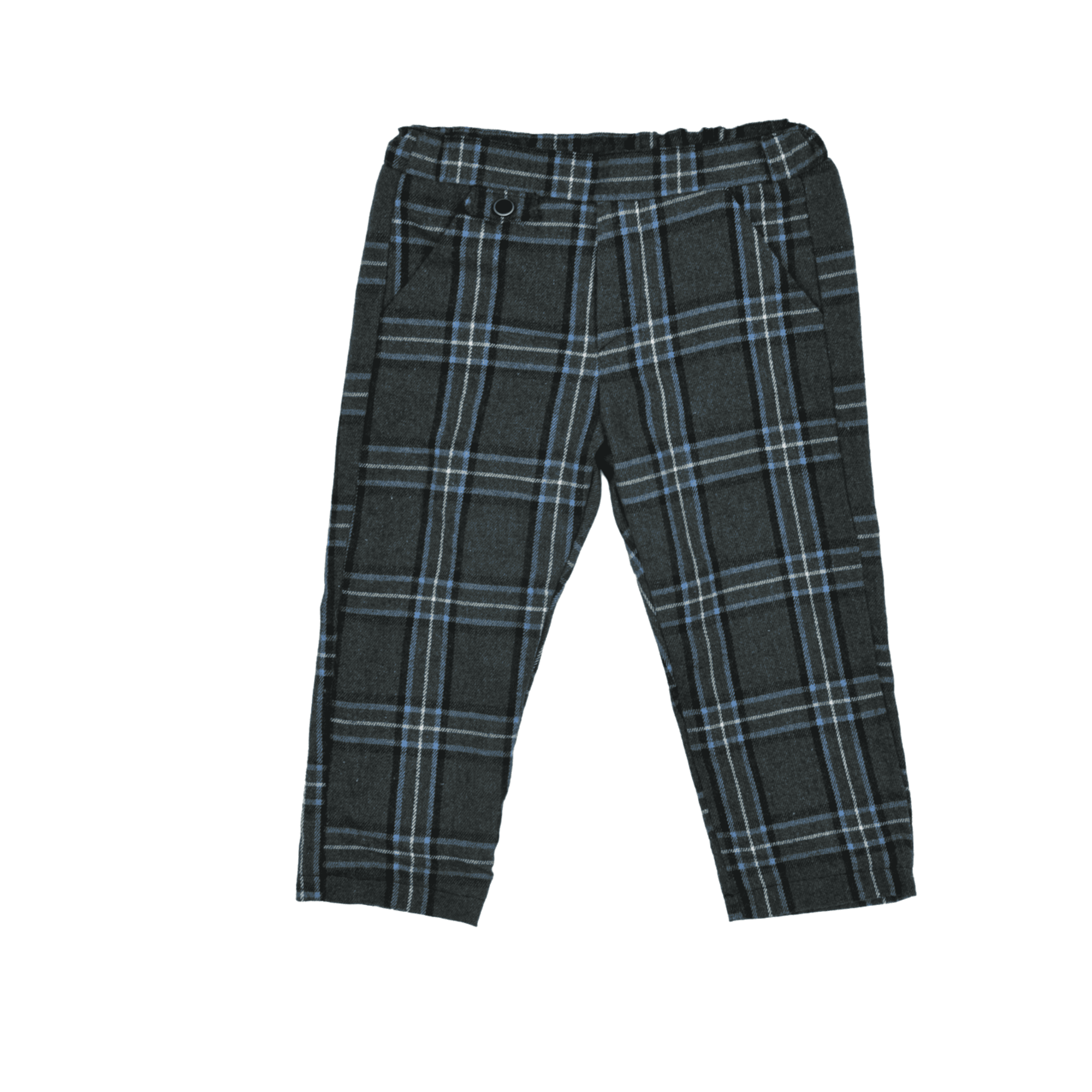 CHARLY | Boys Grey & Blue Check Flannel Trousers