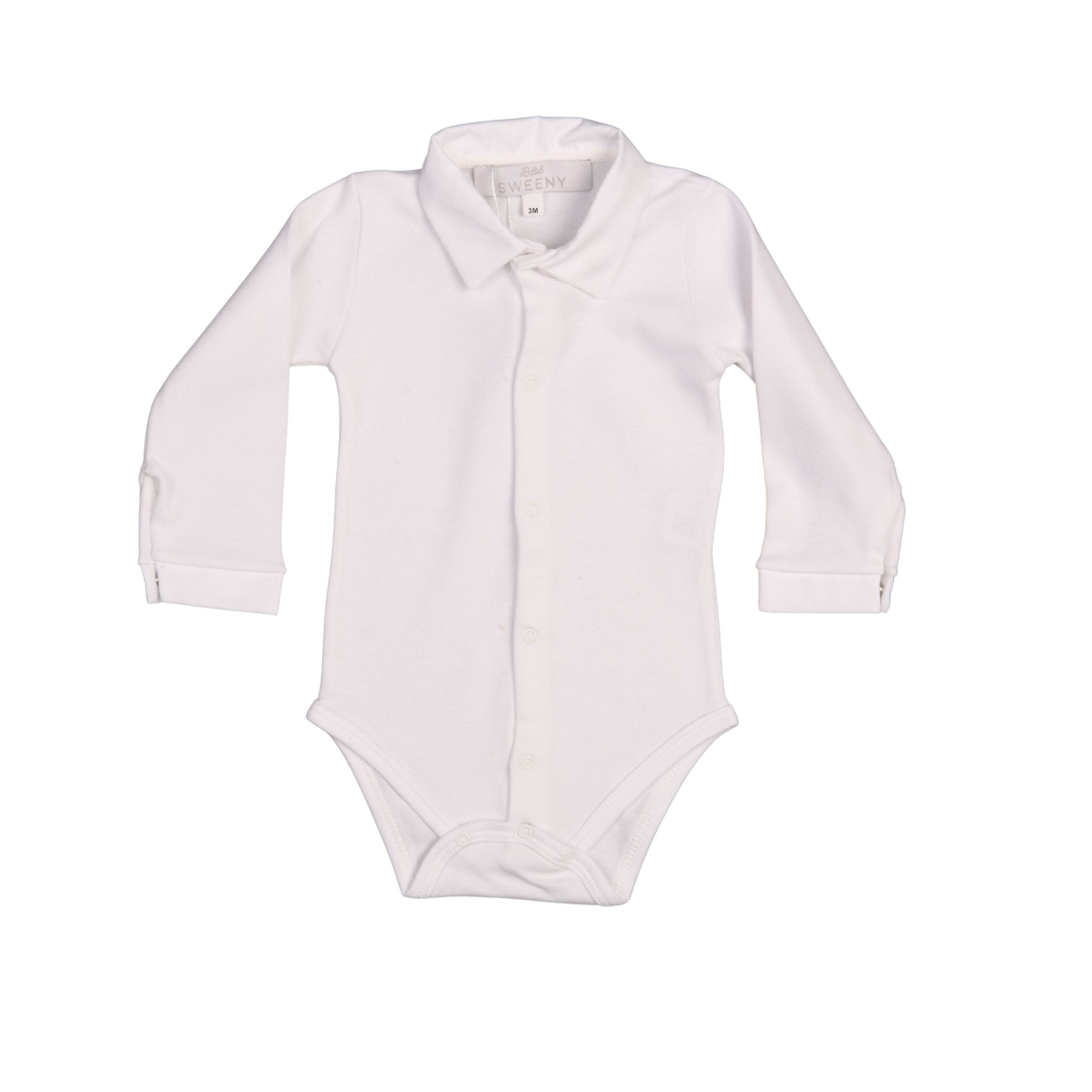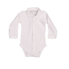 Boys White Cotton Jersey Long-Sleeved Bodysuit With Collar