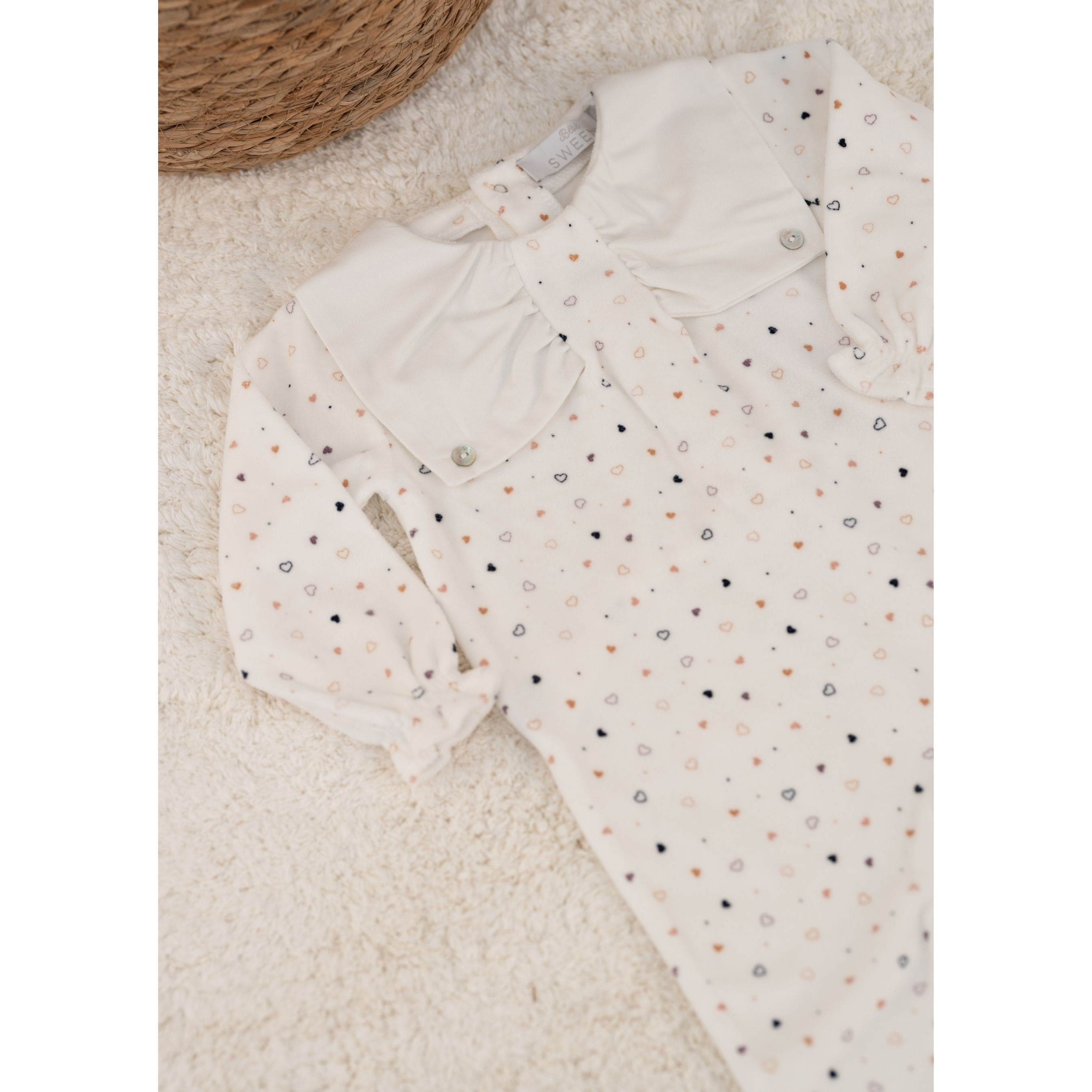 GIULIA | Baby Girls Ivory Heart Print Velour All-in-One