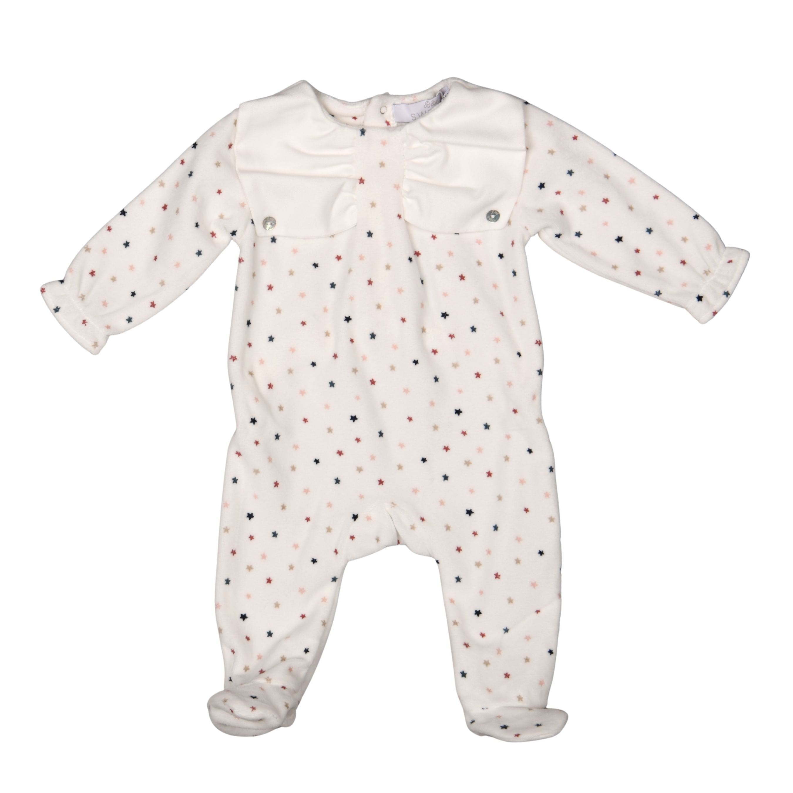 GIULIA | Baby Girls Ivory Star Print Velour All-in-One