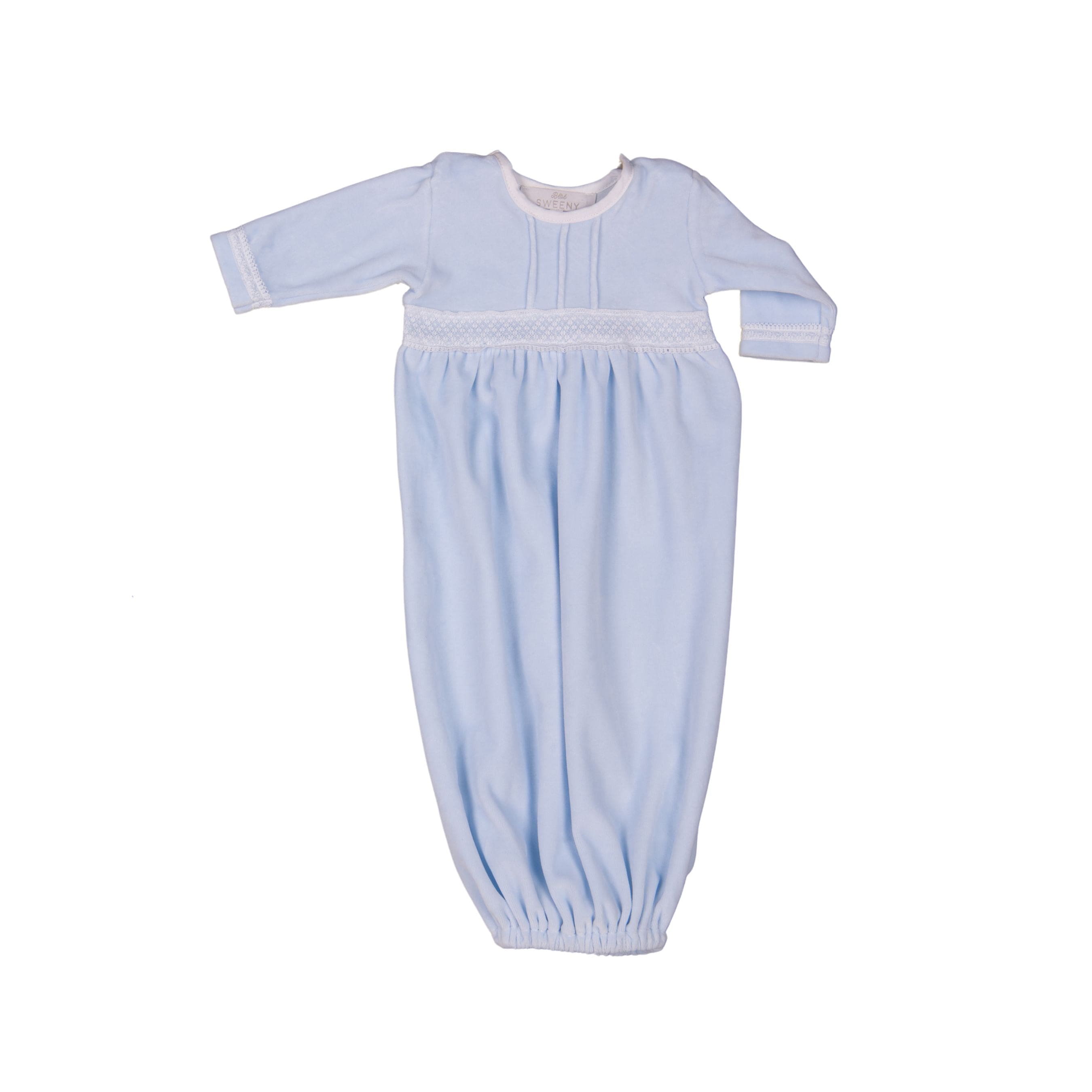 CLASSIC | Baby Boys Blue Velour Gown with Lace Detailing