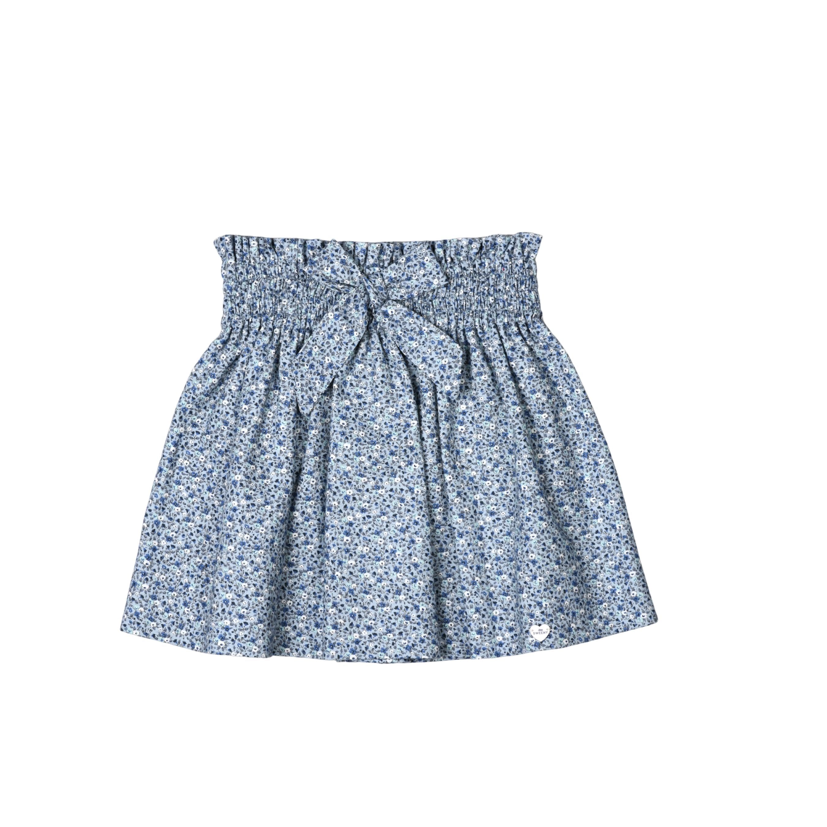 ERMINE | Girls Blue Floral Cotton Smocked Skirt