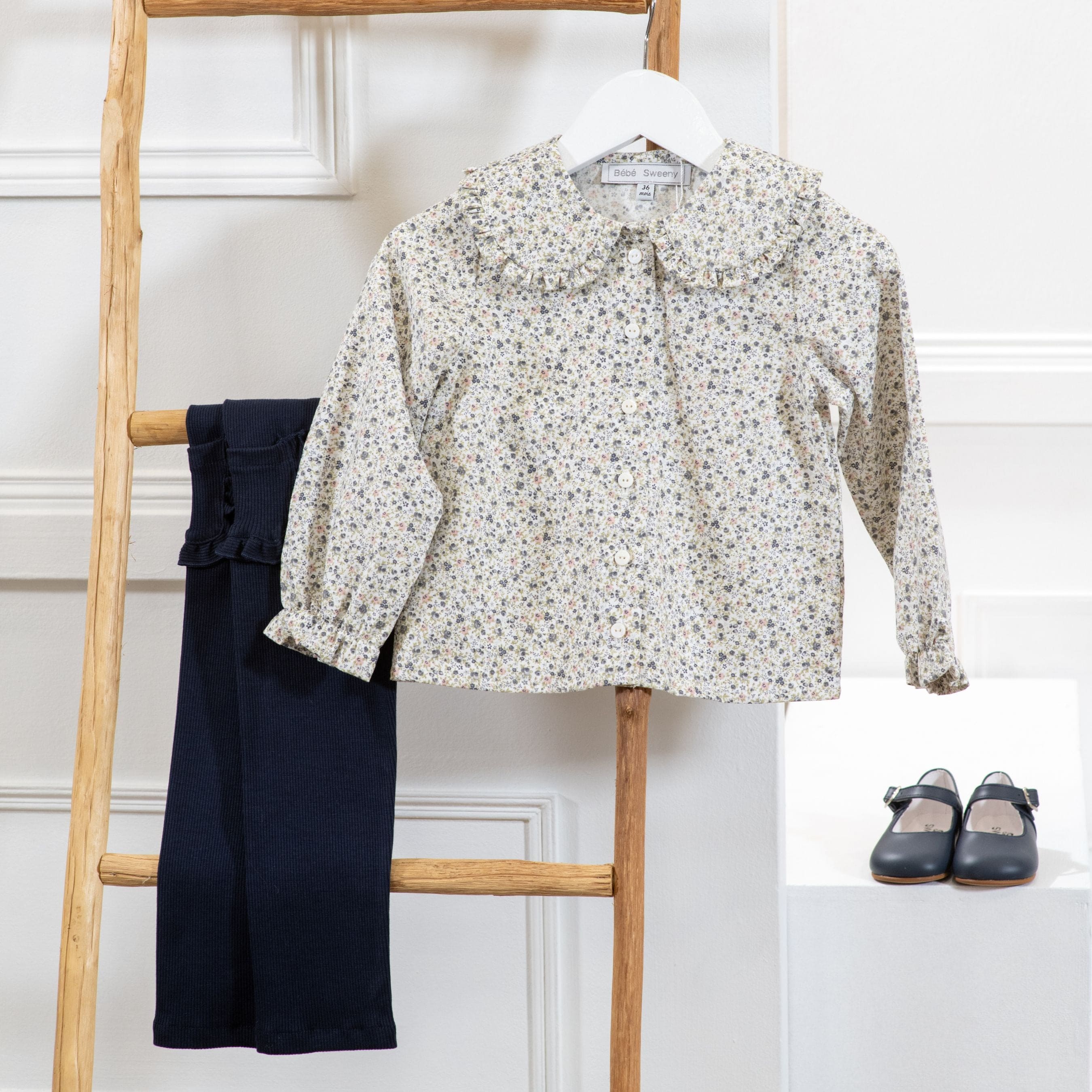 These navy blue leggings, designed for young girls, are made from soft cotton ribbed jersey for maximum comfort. They come equipped with an elastic waistband for a perfect fit, and include charming ruffled side pockets. Create a stylish ensemble by pairing these leggings with a blouse.