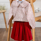 This red skirt for girls is made in soft velour and has an elasticated waistband for a comfortable fit. Elevate your daughter's wardrobe by styling this red velour skirt with one of our coordinating floral print blouses for a refined outfit.