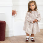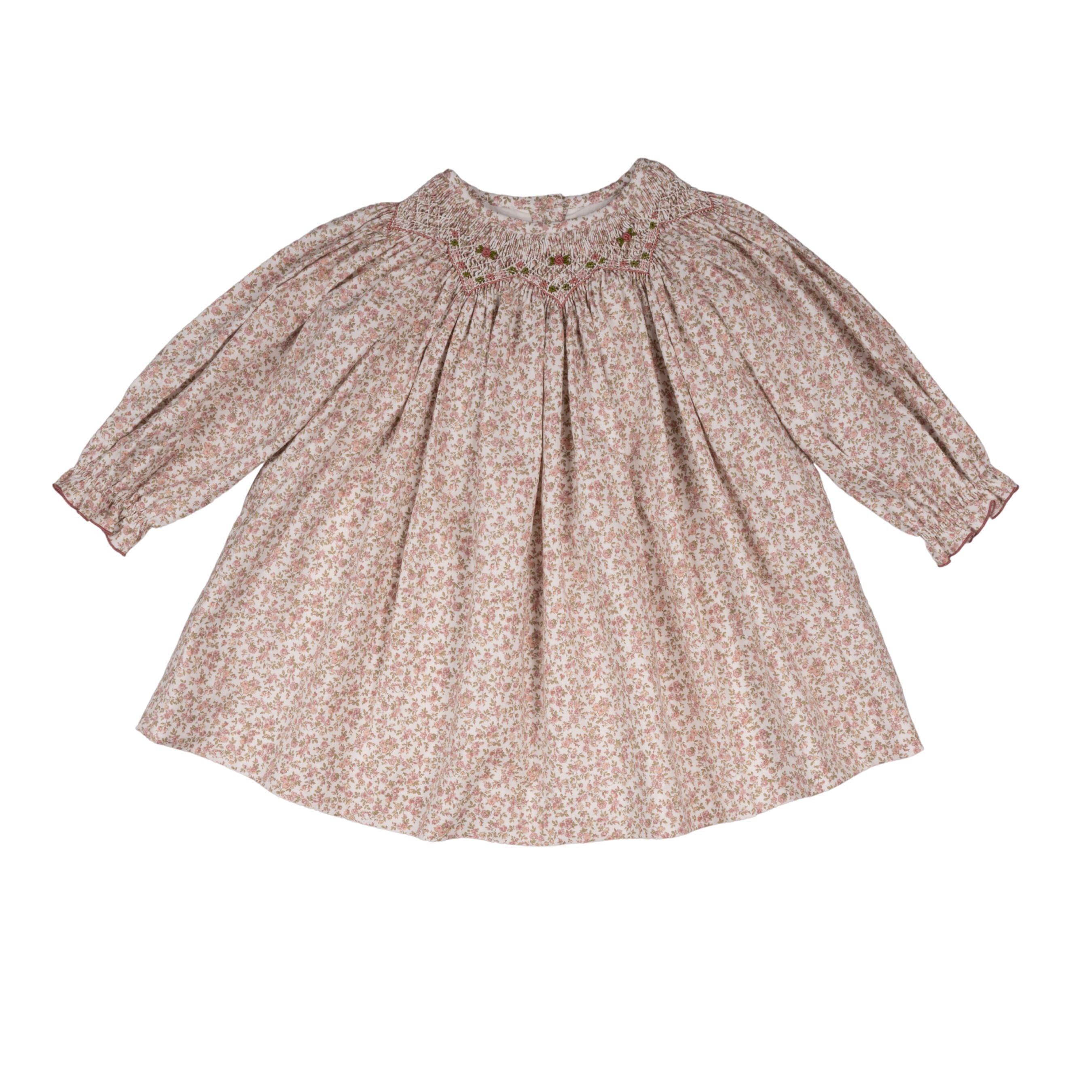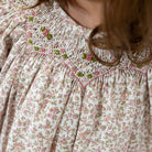 FLORENCE | Girls Beige & Pink Floral Cotton Hand-Smocked Dress