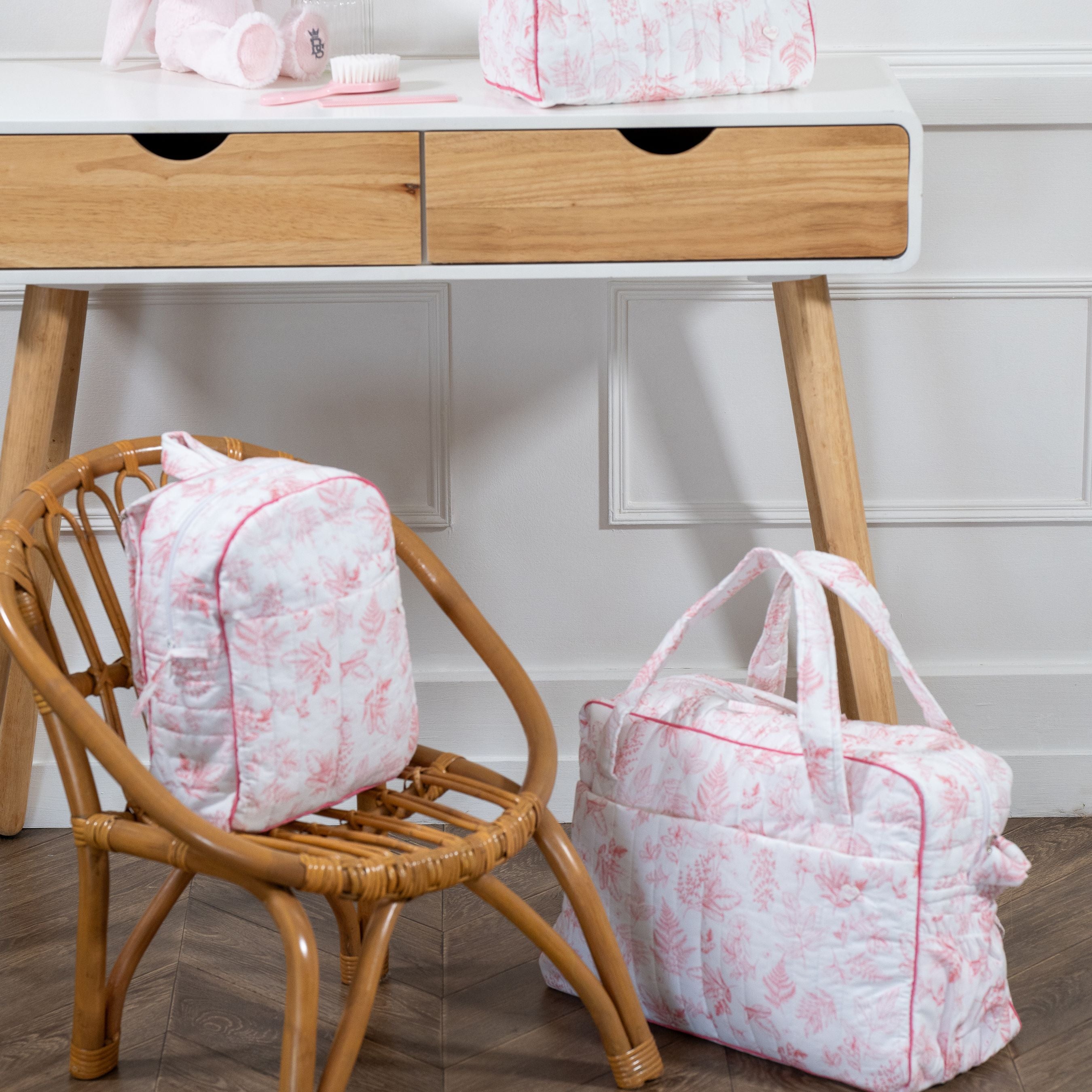 Toile de Jouy | Pink Nursery Bag & Changing Mat