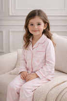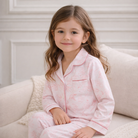 Soft and refined, this two-piece set in our exclusive pink Toile de Jouy is elevated by a tailored collar and delicate contrast piping. An elegant Bebe Sweeny essential designed for comfort, lounging and sleep.