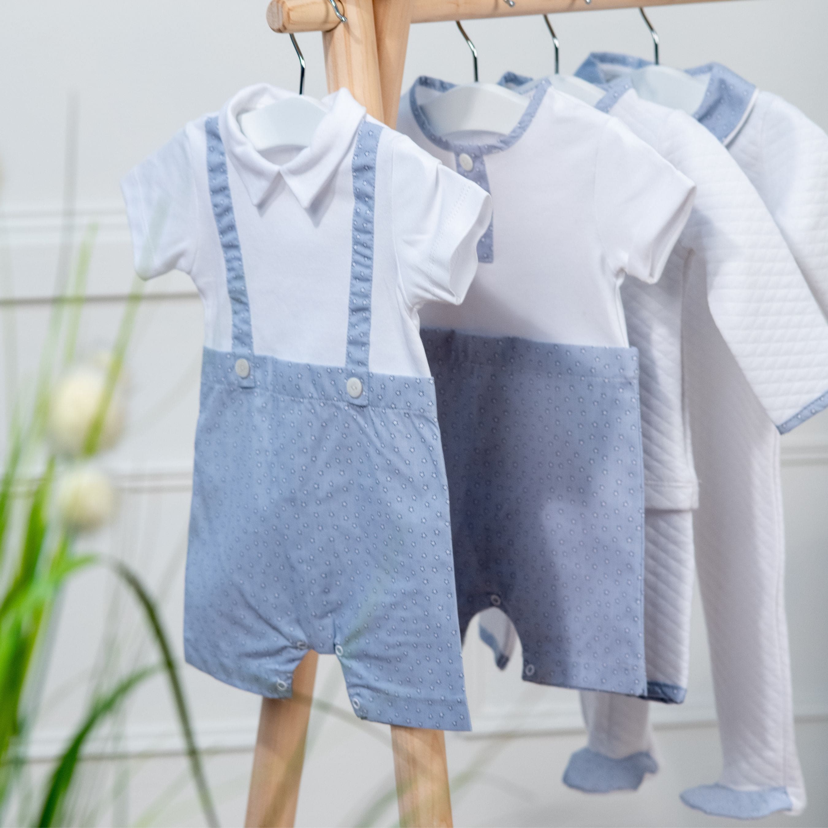 This all-in-one for boys is made from quilted cotton jersey and features a convenient full zip front. Designed with a blue star print collar, it is gentle and comfortable on delicate skin. With a protective chin guard, this one-piece ensures practicality and cuteness for your little one.