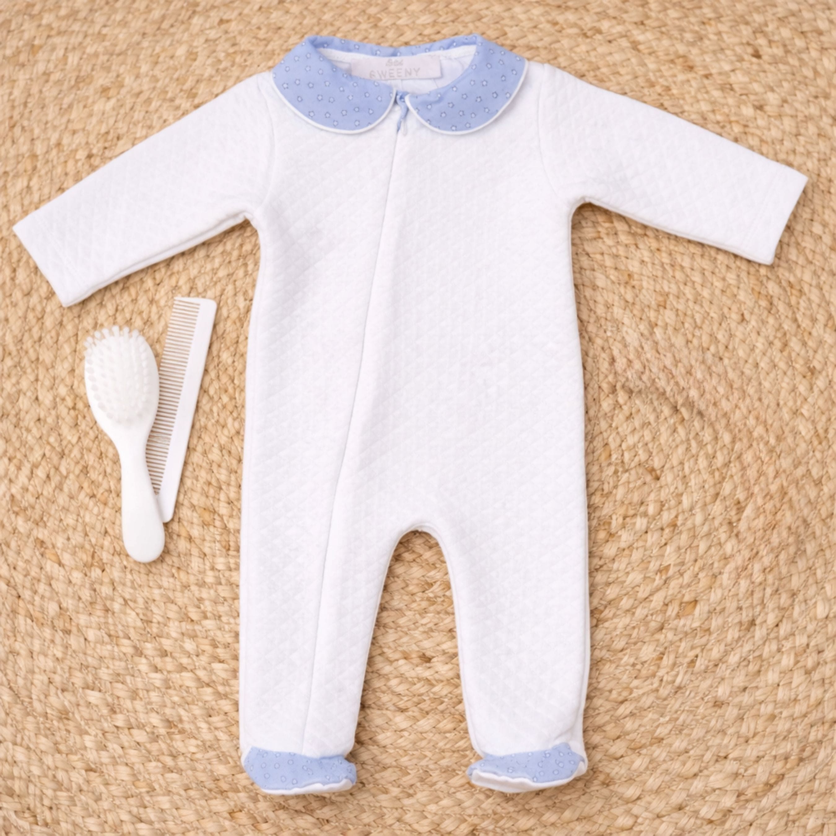 LITTLE STARS | Boys White Quilted Cotton Zipper All-in-One