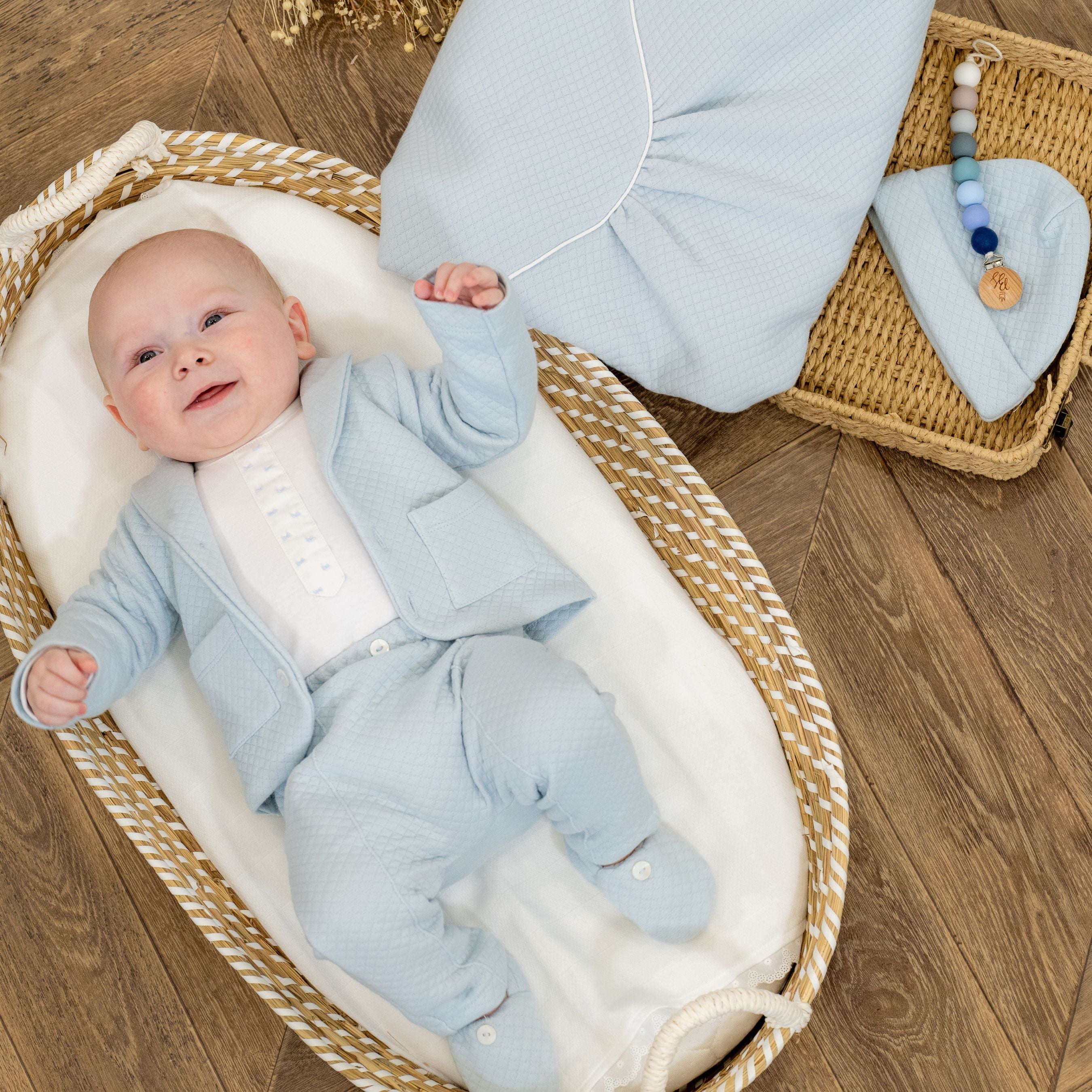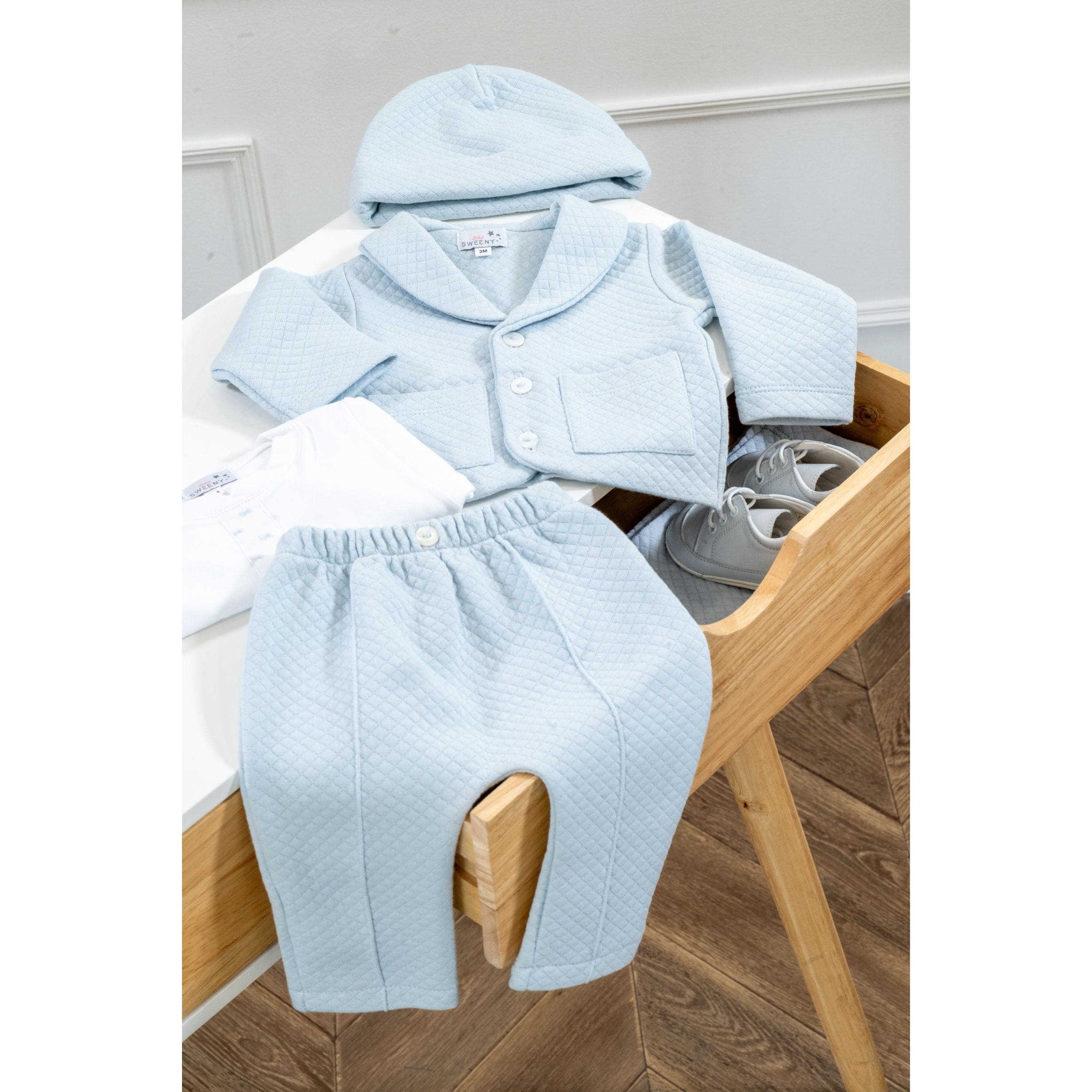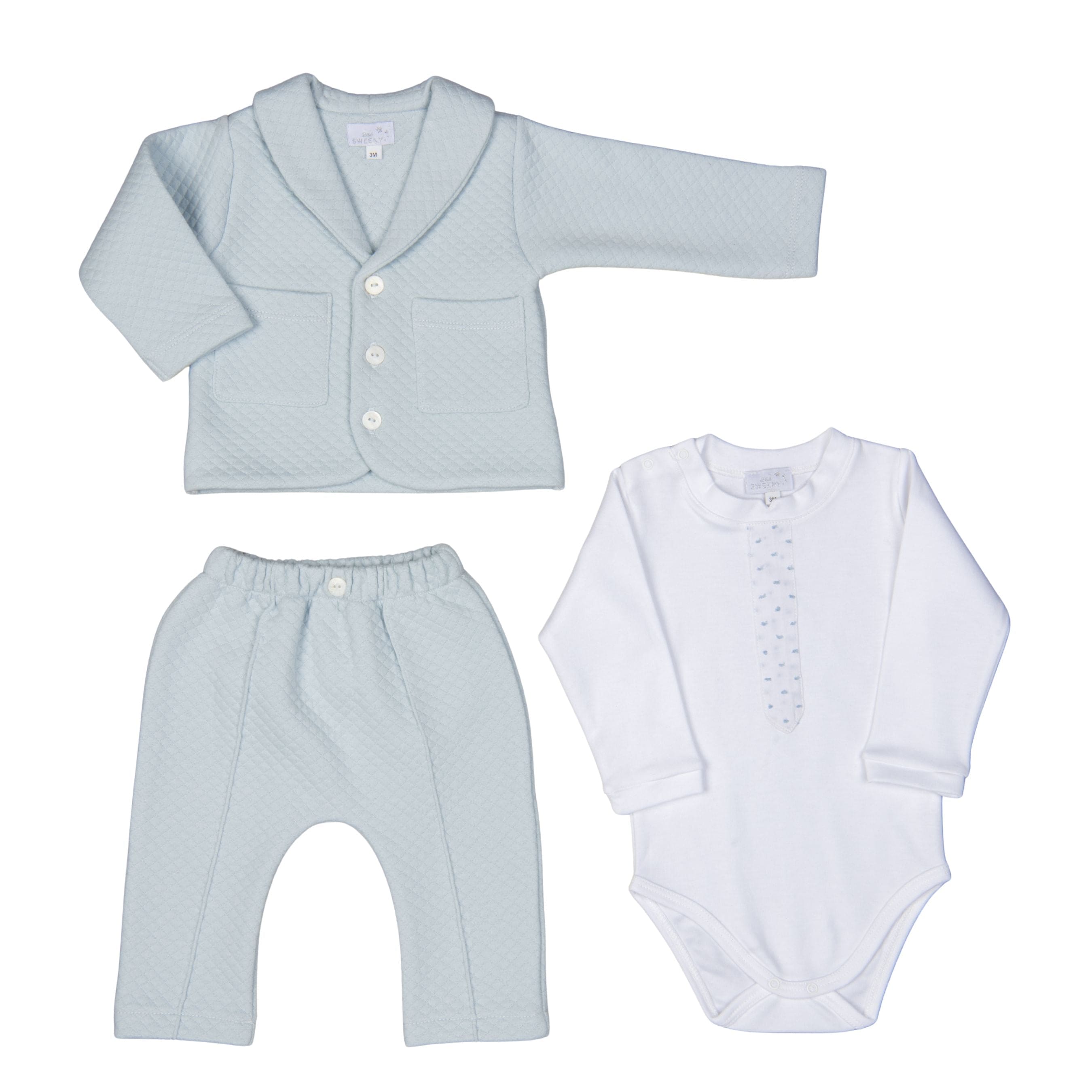 LEO | Baby Boy Light Blue Quilted Cotton Set & Bodysuit