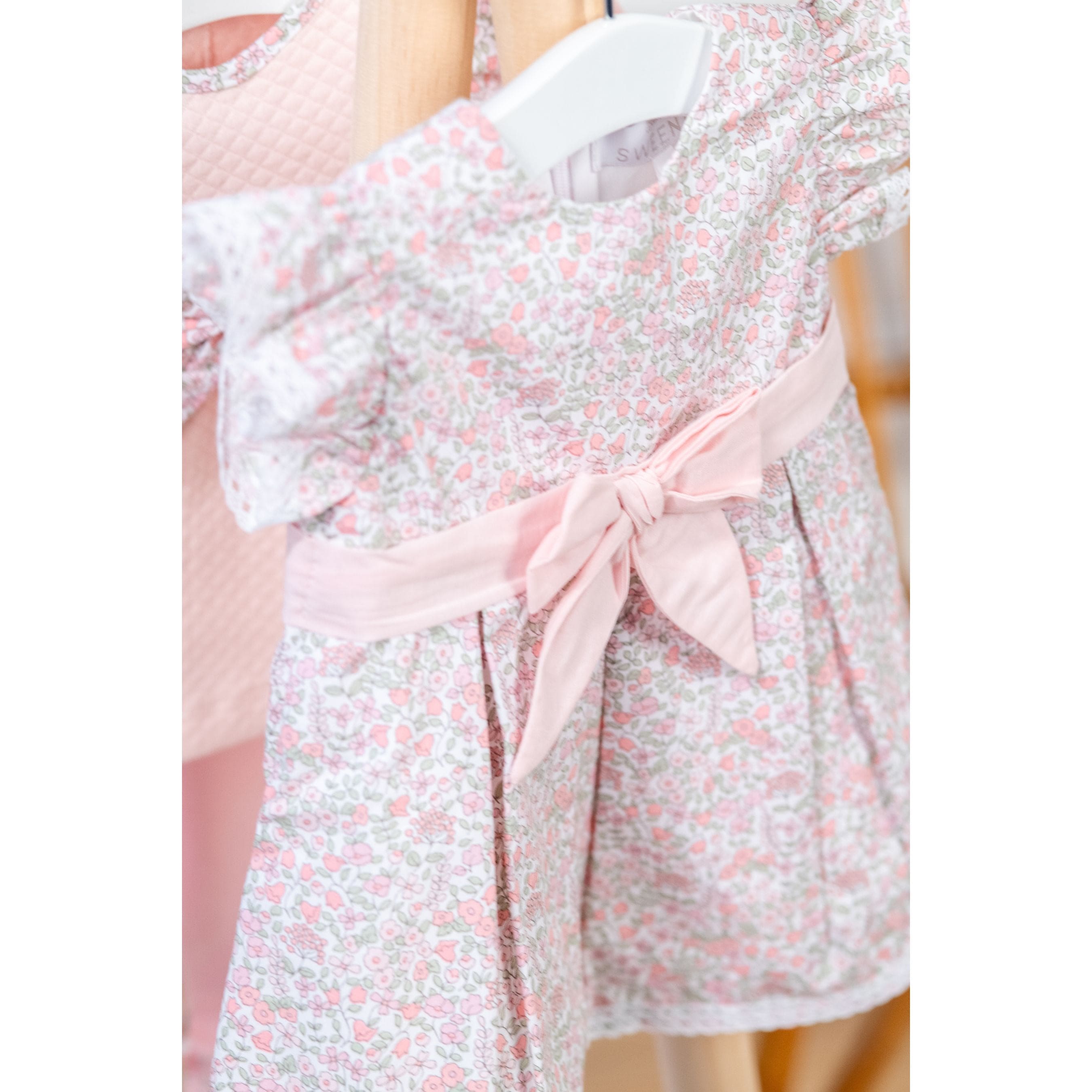 PETITE FLEUR | Girls Pink Cotton Floral Print Dress Set