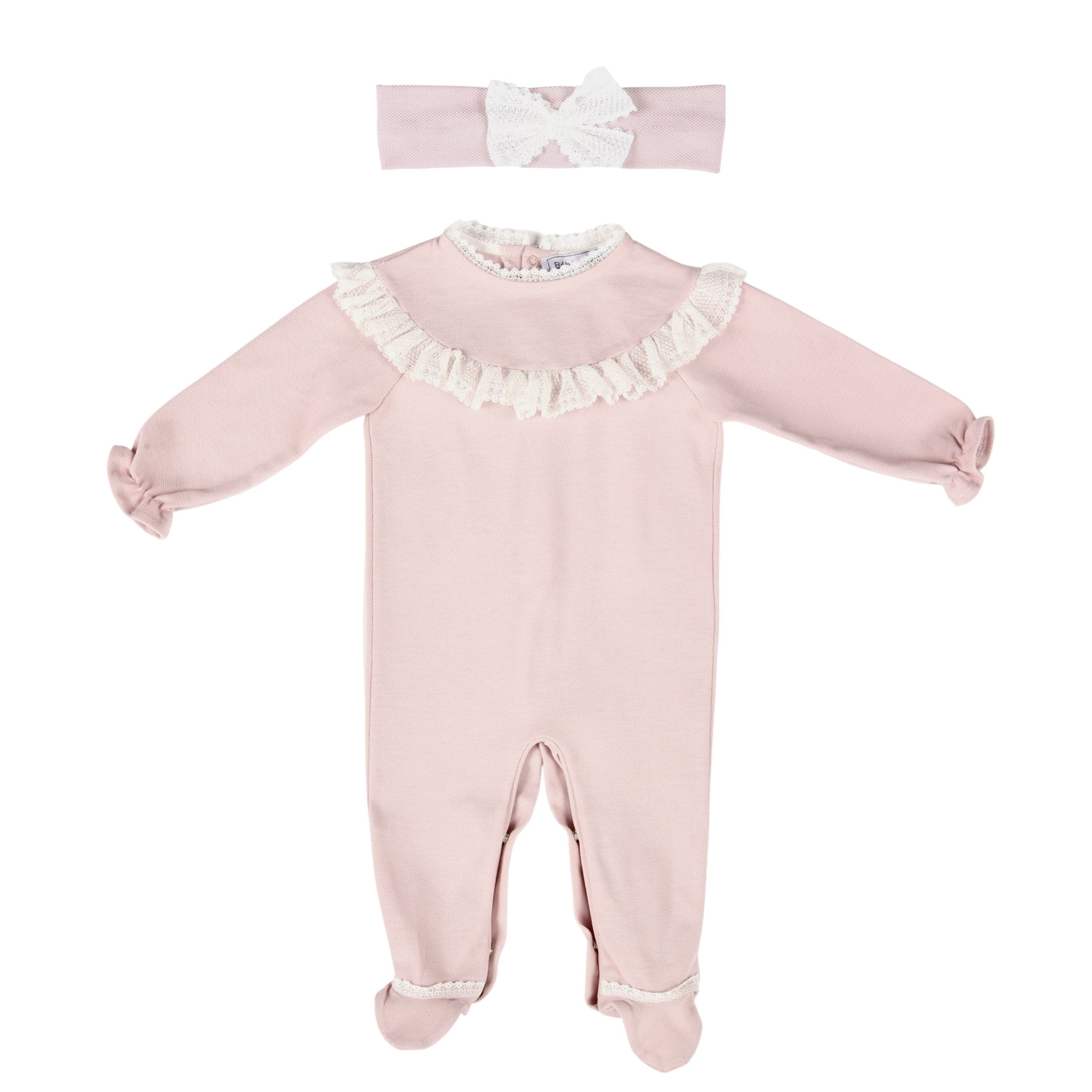Ensemble body en coton blanc et rose nuage pour bébé fille (2)