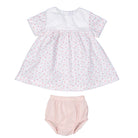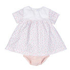 - Set includes: floral dress and matching soft pink bloomer