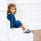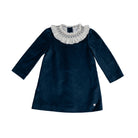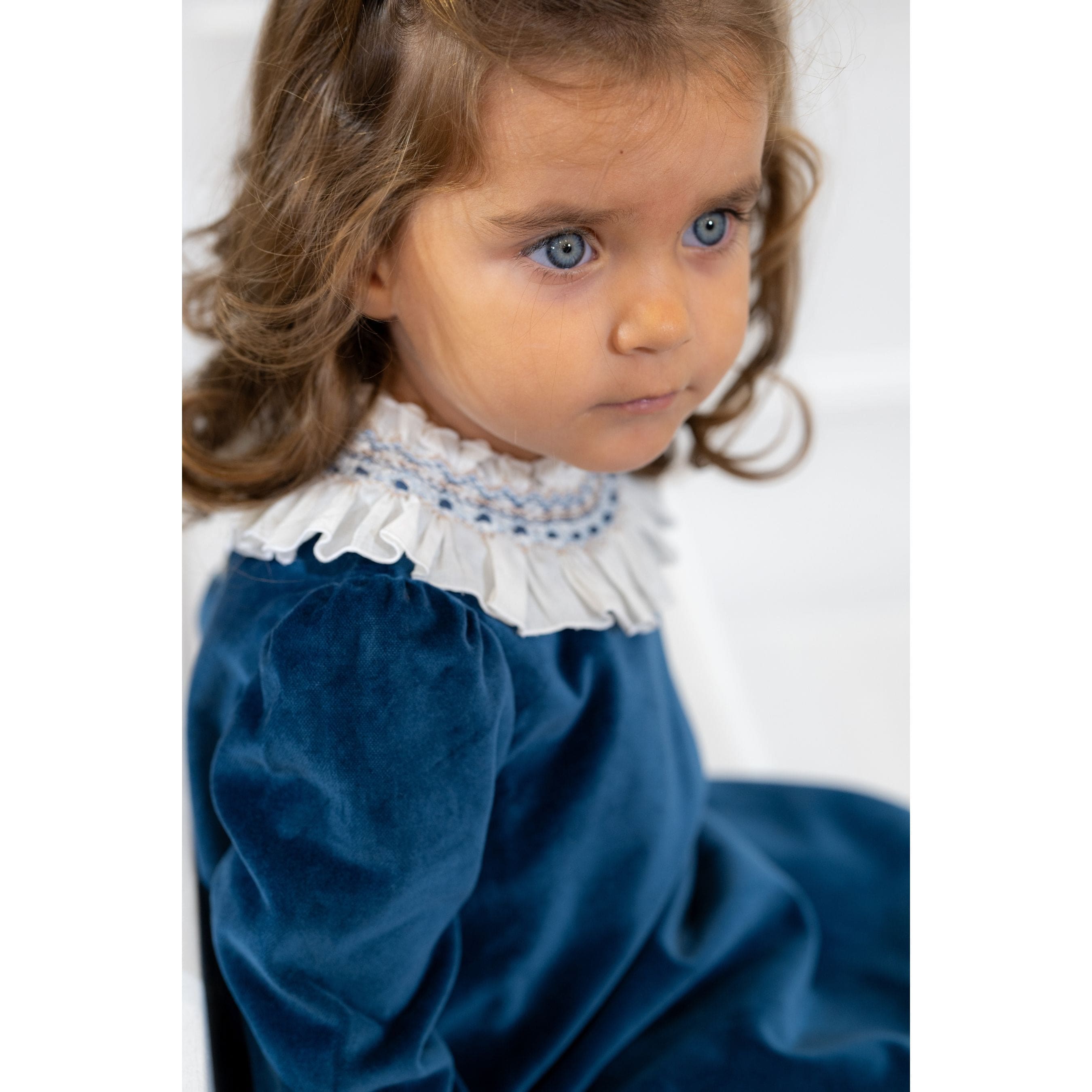 FLORIANE | Girls Navy Blue Velvet Dress with Hand-Smocked Collar
