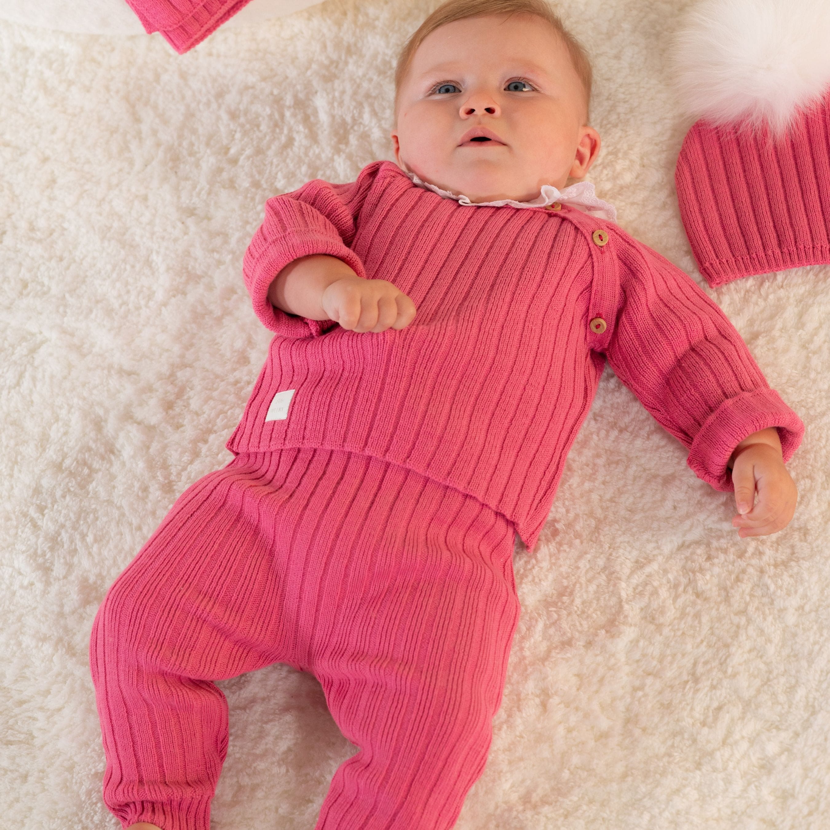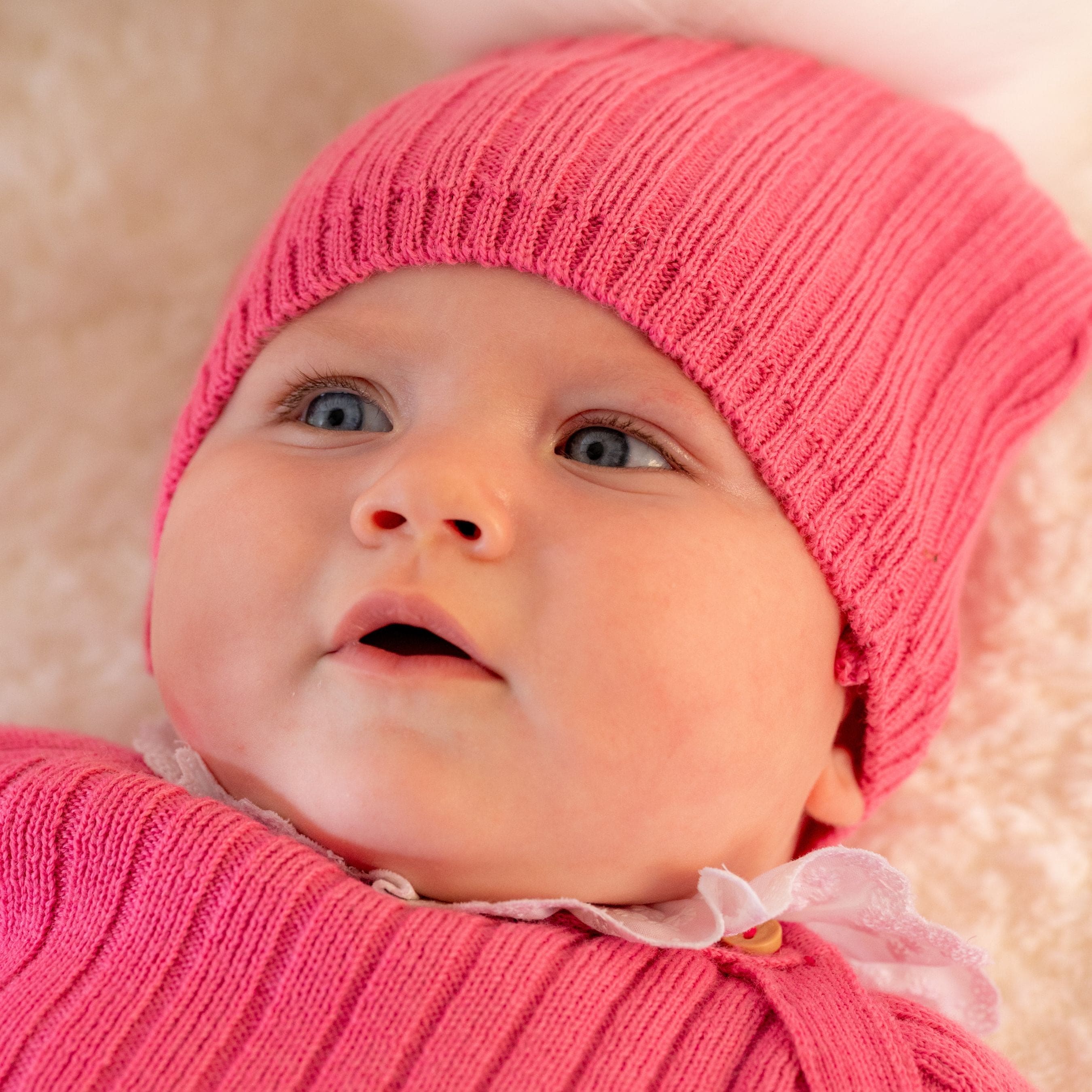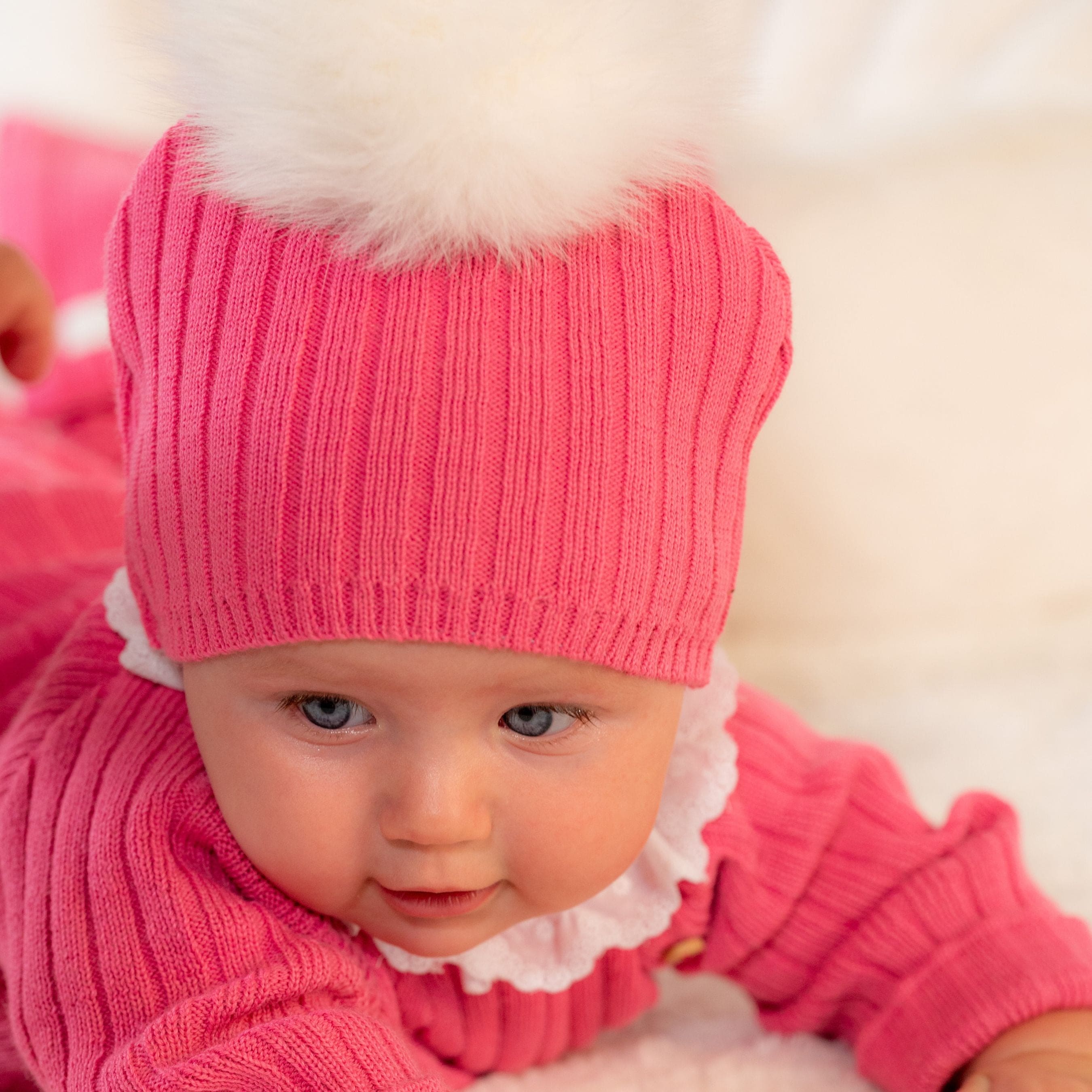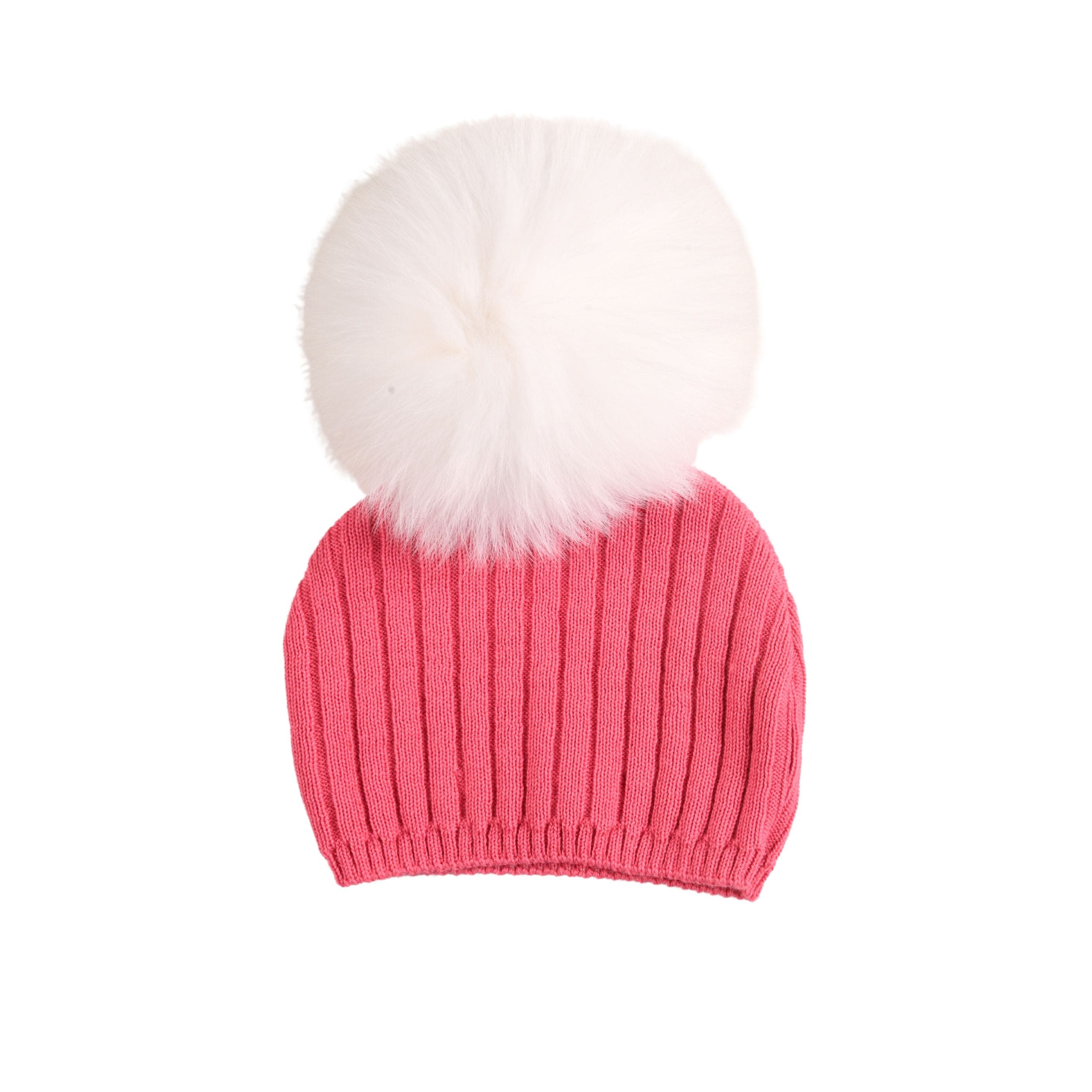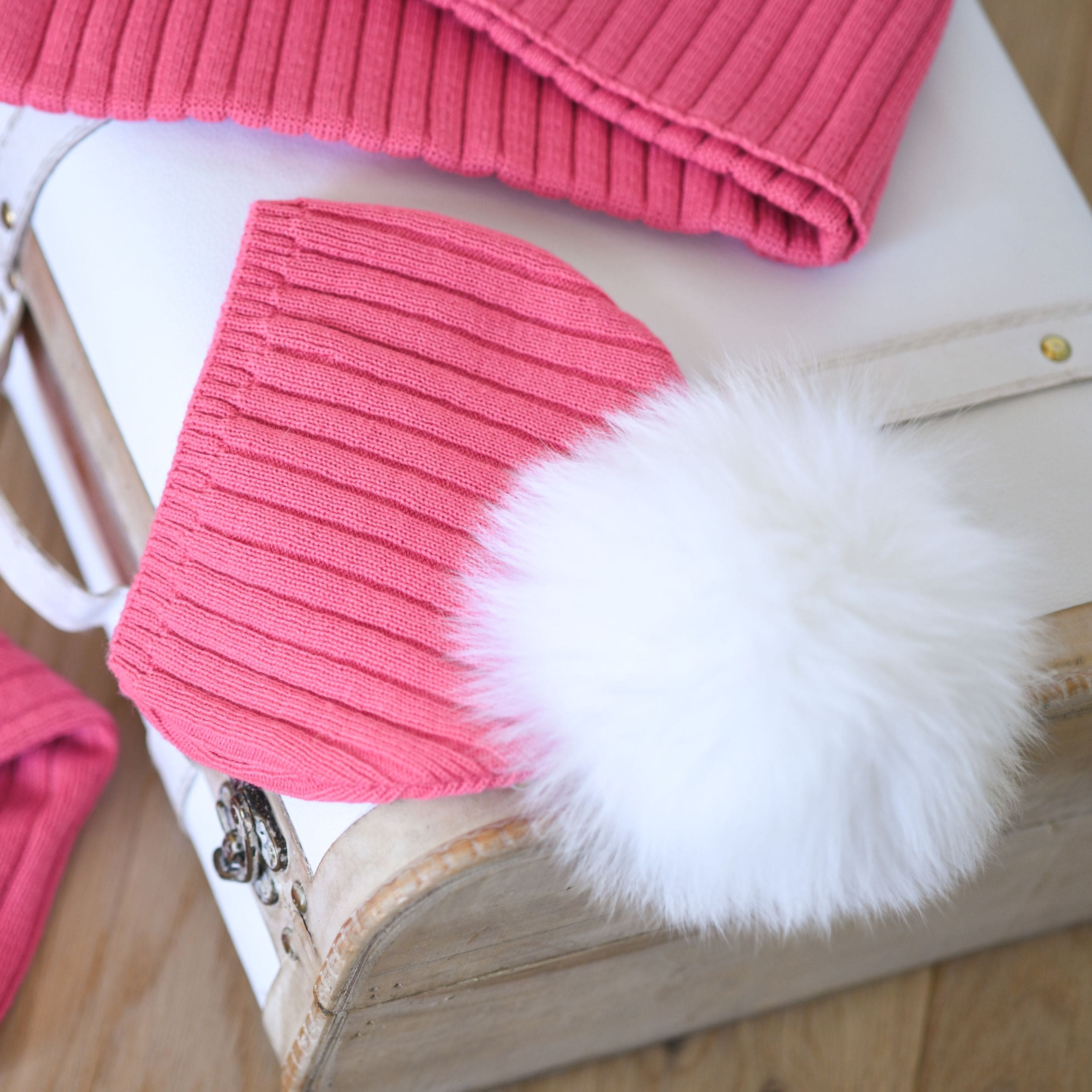 Girls Camellia Pink Knitted Pom-Pom Hat | Made in France